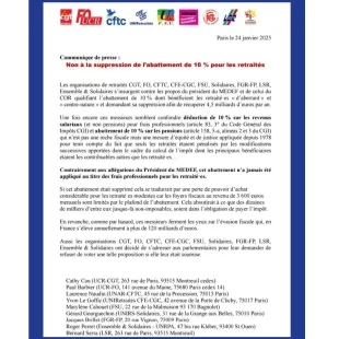 COMMUNIQUE DE PRESSE – NON À LA SUPPRESSION DE L’ABATTEMENT DE 10% POUR LES RETRAITÉS