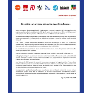 COMMUNIQUÉ DE PRESSE – RETRAITES : UN PREMIER PAS QUI EN APPELLERA D’AUTRES