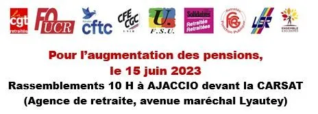 Retour aux actualités Date 12.06.2023 Pour l’augmentation des pensions ! La CFE-CGC participe au rassemblement qui aura lieu le 15 juin 2023 à Ajaccio ! Tract action du 15 juin – Retraites