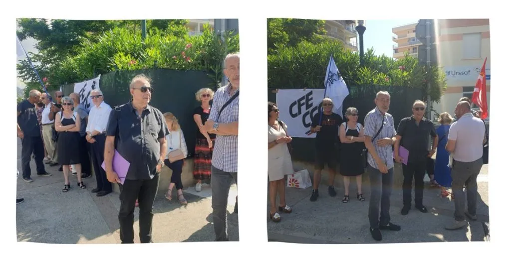 Retour aux actualités Date 15.06.2023 RASSEMBLEMENT : 15 juin 2023 Aujourd’hui a eu lieu un rassemblement devant la CARSAT à Ajaccio ! Peu nombreux mais toujours présents ! CP INTERSYNDICAL – 15 JUIN 2023